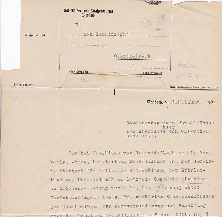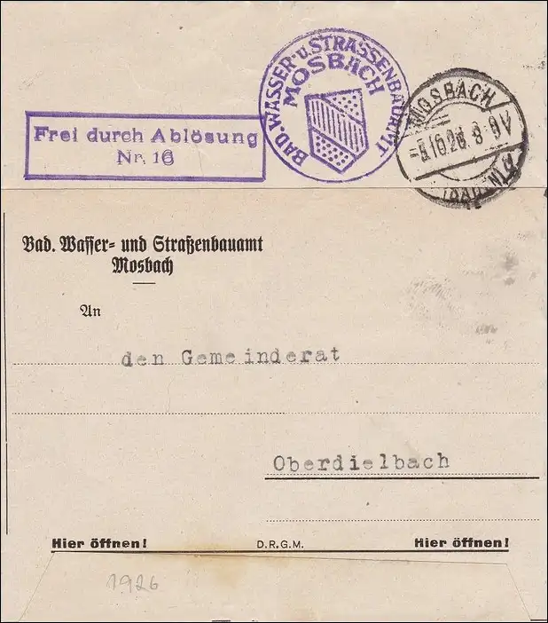 Badisches Water- und Strassenbauamt Mosbach d'après Oberdielbach 1926