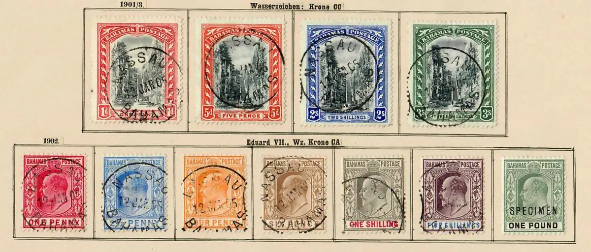 Bahama Islands 1859-1902 nearly complete stamp collection */o