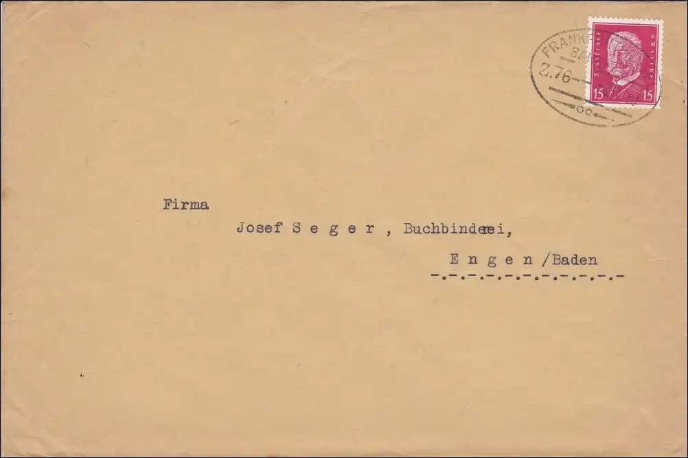 Poste ferroviaire: Lettre avec cachet de train Francfort - Bâle 1930