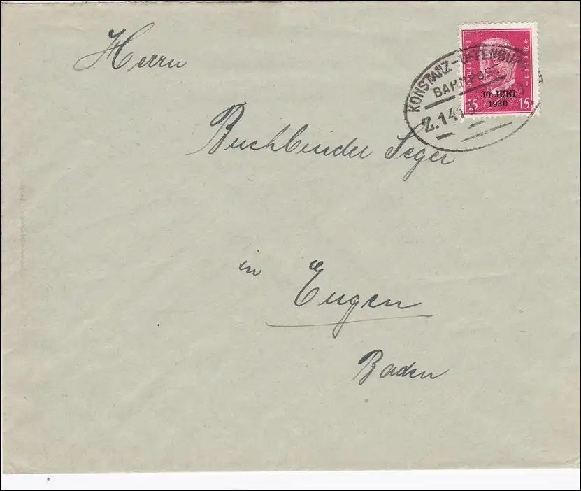 Poste ferroviaire: Lettre avec cachet de train Konstance-Offenburg 1930