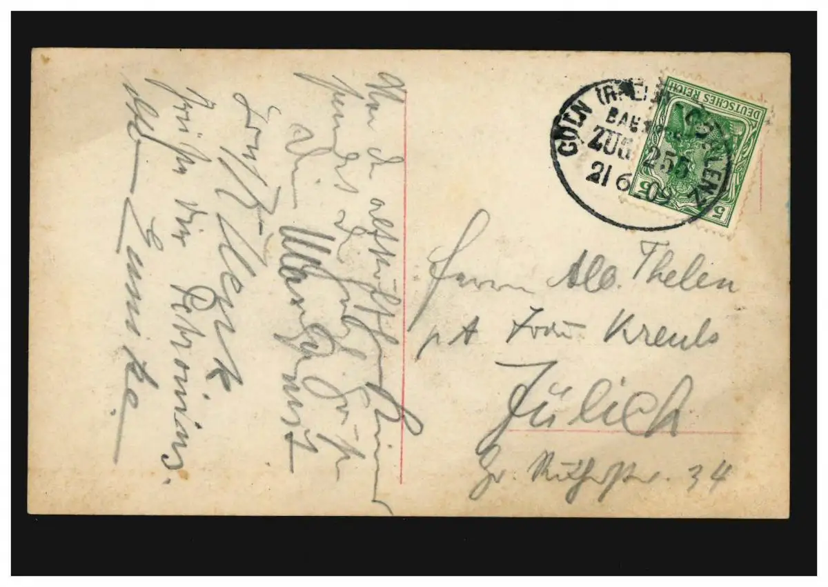 Post de train CÖLN (RHEIN) - COBLENZ ZUG 255 - 21.6.1909 sur mode-AK image femme