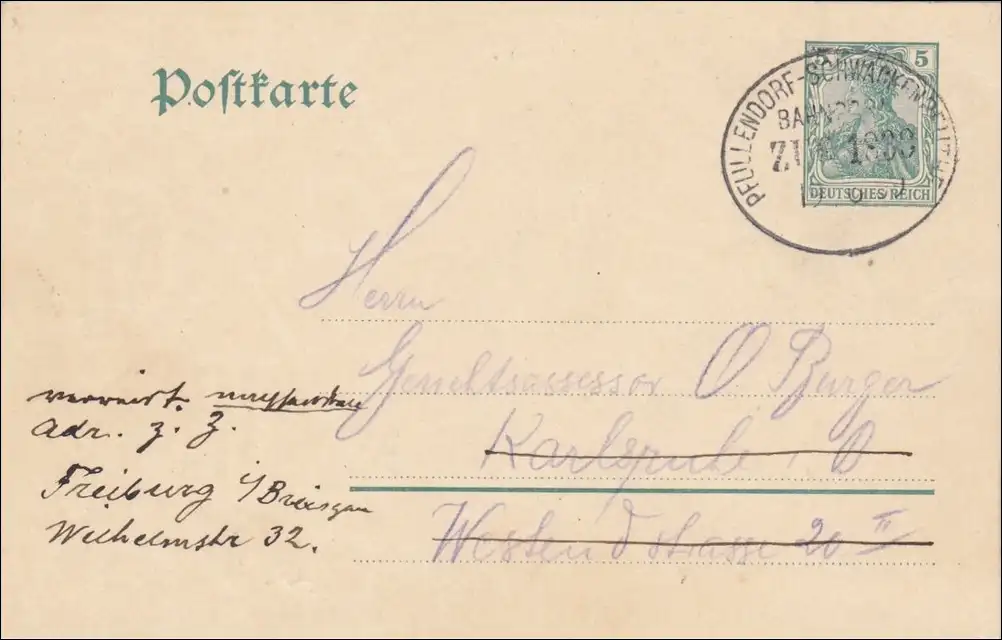 Bahnpost: Global Sacheh Germania avec Tampon Pfullendorf-Schwackenbeuthe 1909