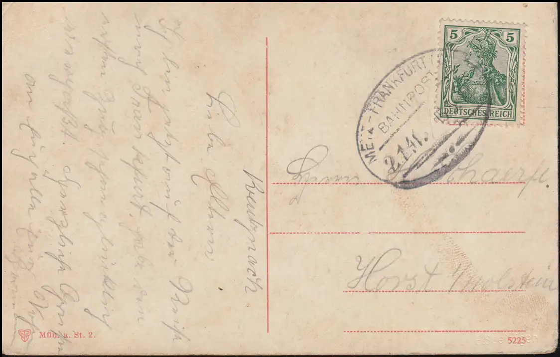 Bahnpost METZ - FRANKFURT/MAIN ZUG 141 - 15.5.1910 sur AK Rheingrafenstein
