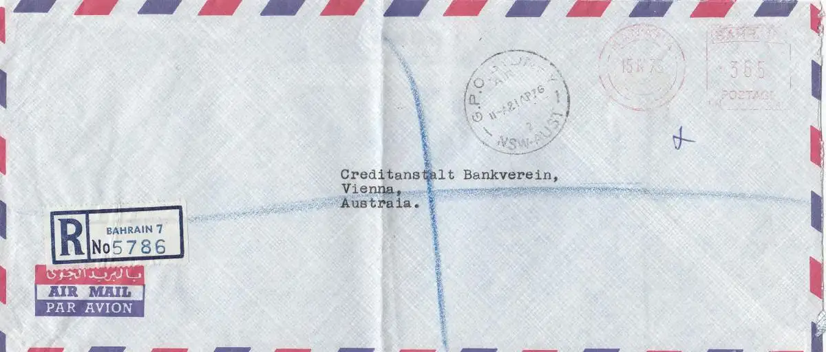 Bahreïn: Air mail to 1973 to Vienna, Austria