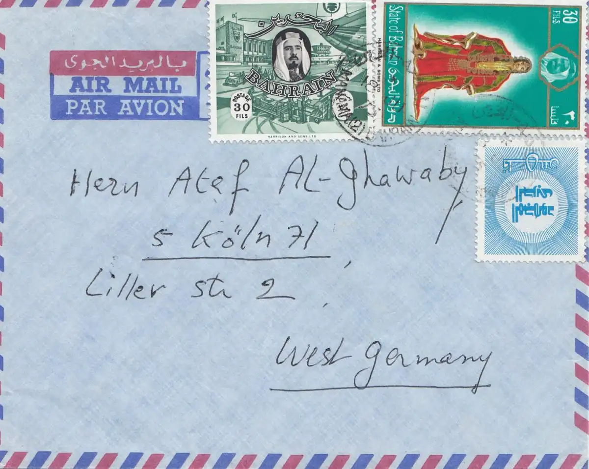 Bahreïn: Air mail Manama to Cologne, 1973