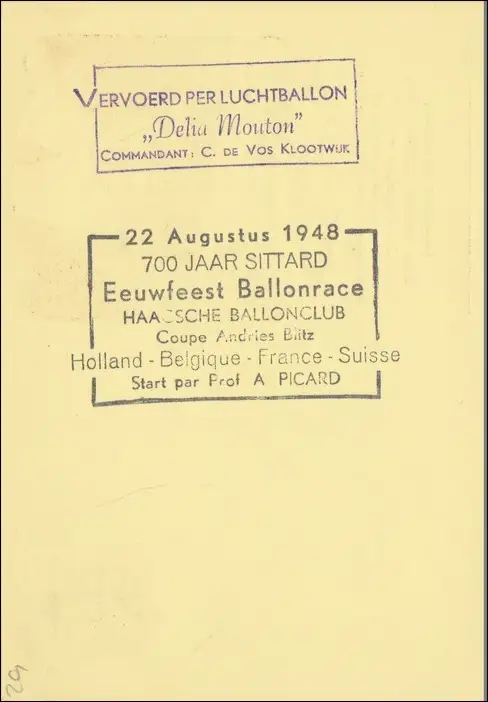 Ballon Course Holland/Belgique/France/Suisse Düsseldorf vers Rotterdam 1948