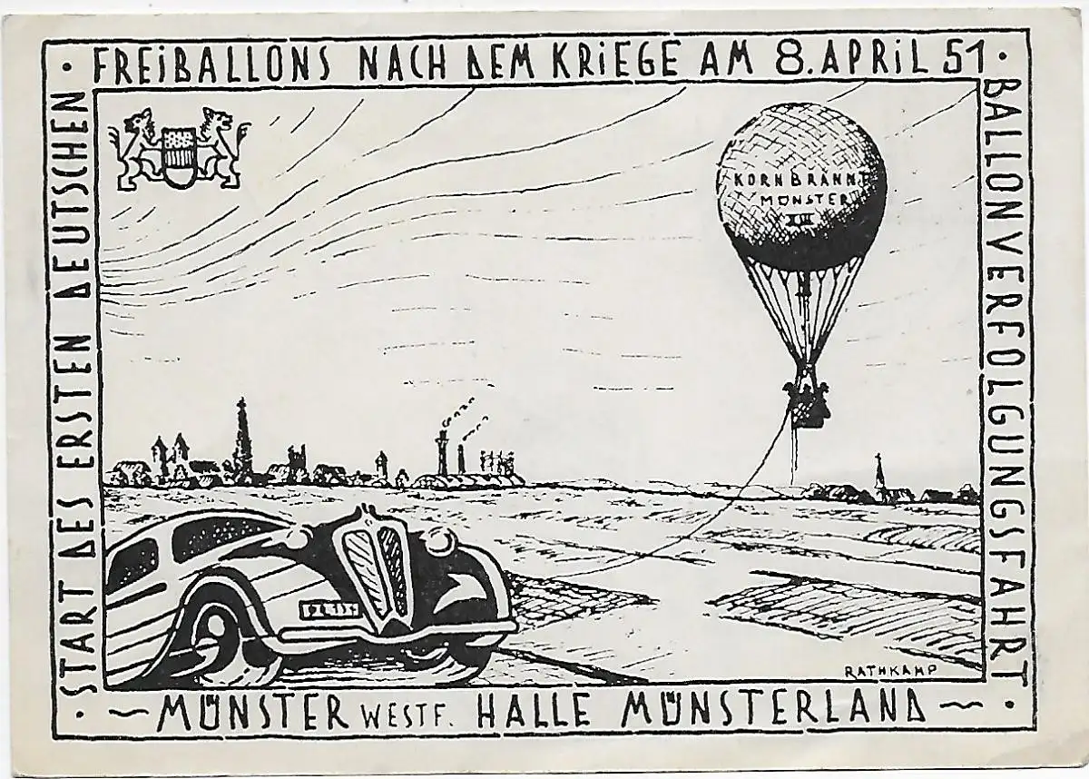 Carte du courrier de ballons Freitballon Sportverein Münster, 1951 Gertingen retour