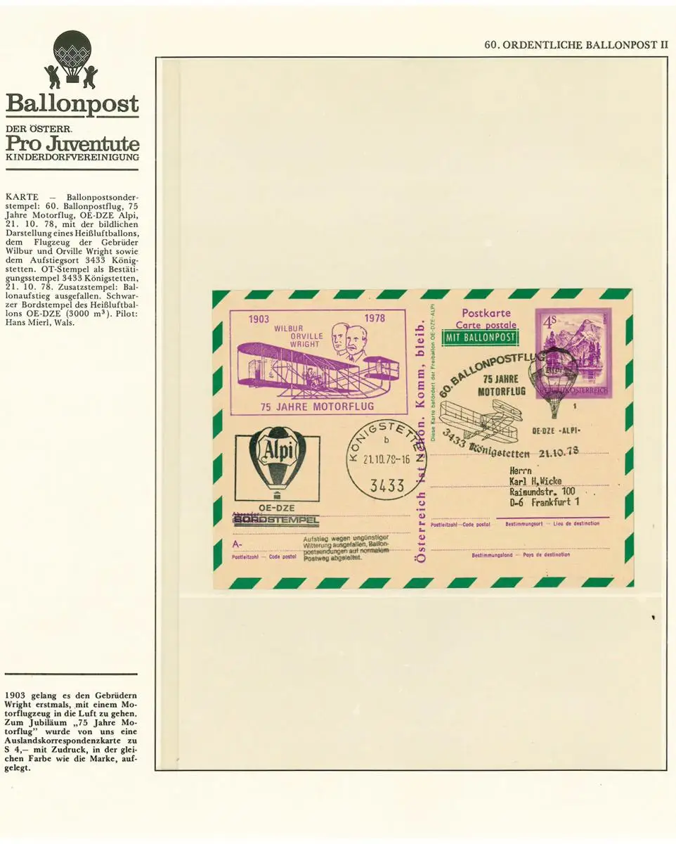 Ballons Post Pro Juventute - une preuve de l'abonnement gagnant selon la figure, (50421)