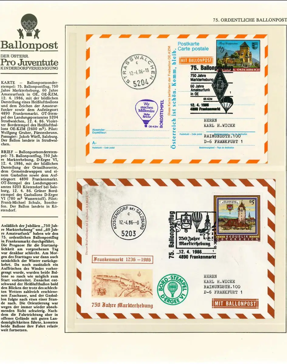 Ballons Post Pro Juventute - deux preuves de l'abonnement gagnant selon la figure (50449)