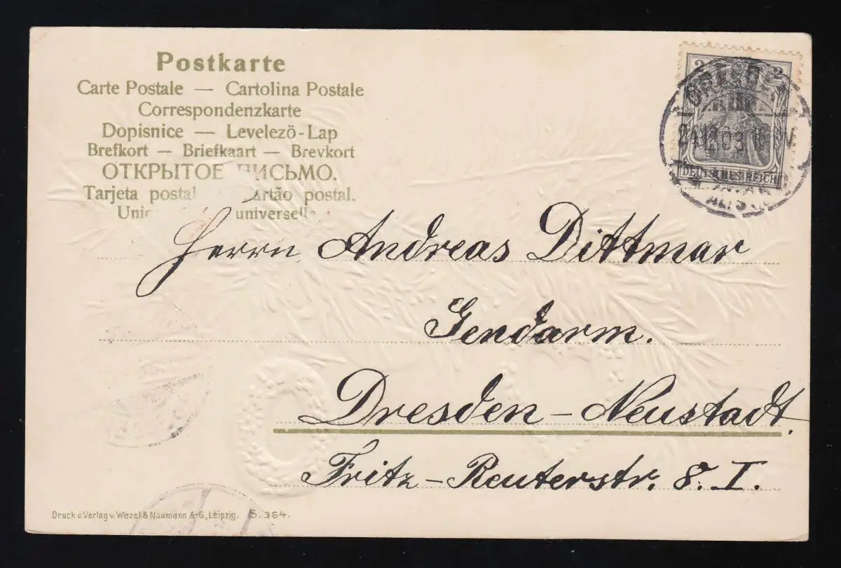 Bâtons de sapin Bouquets de boules rouges, Béni Noël, Dresde 24.12.1903