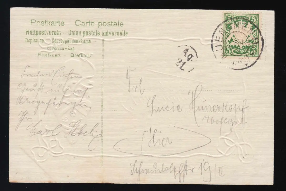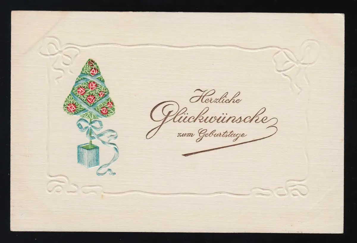 Baumes ruban bleu fleurs rouges, Félicitations anniversaire Muenchen 8.11.1907