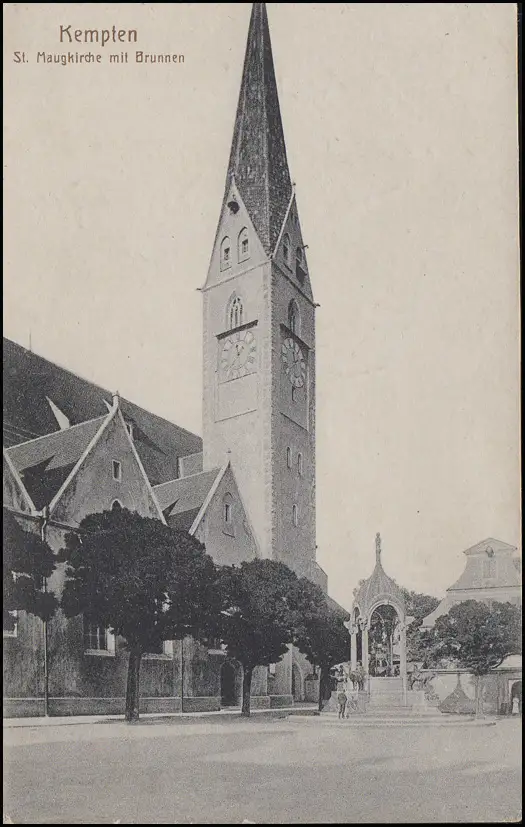 Bavière 15 Pf. Ludwig Volksstaat EF AK Kempten St. Maugkirche avec puits 8.6.19
