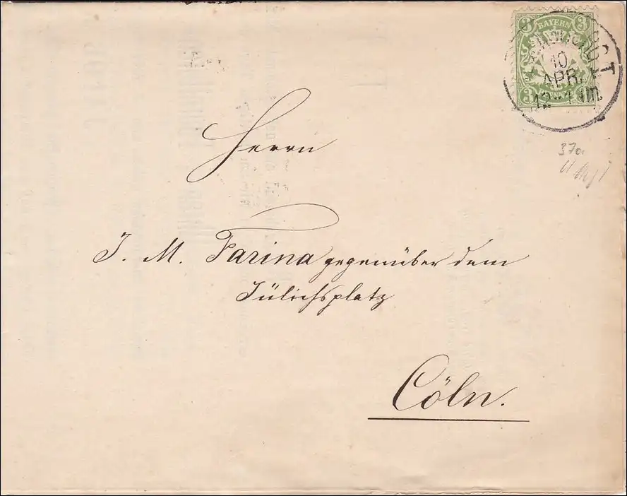 Bavière: 1880, lettre avec lettre au format A3 de Regensburg à Cöln