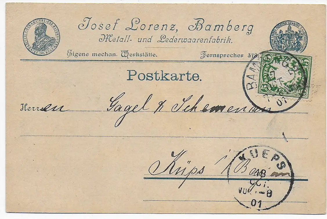 Bavière: Bamberg d'après Kueps 1901, métal et cuirfrabrik