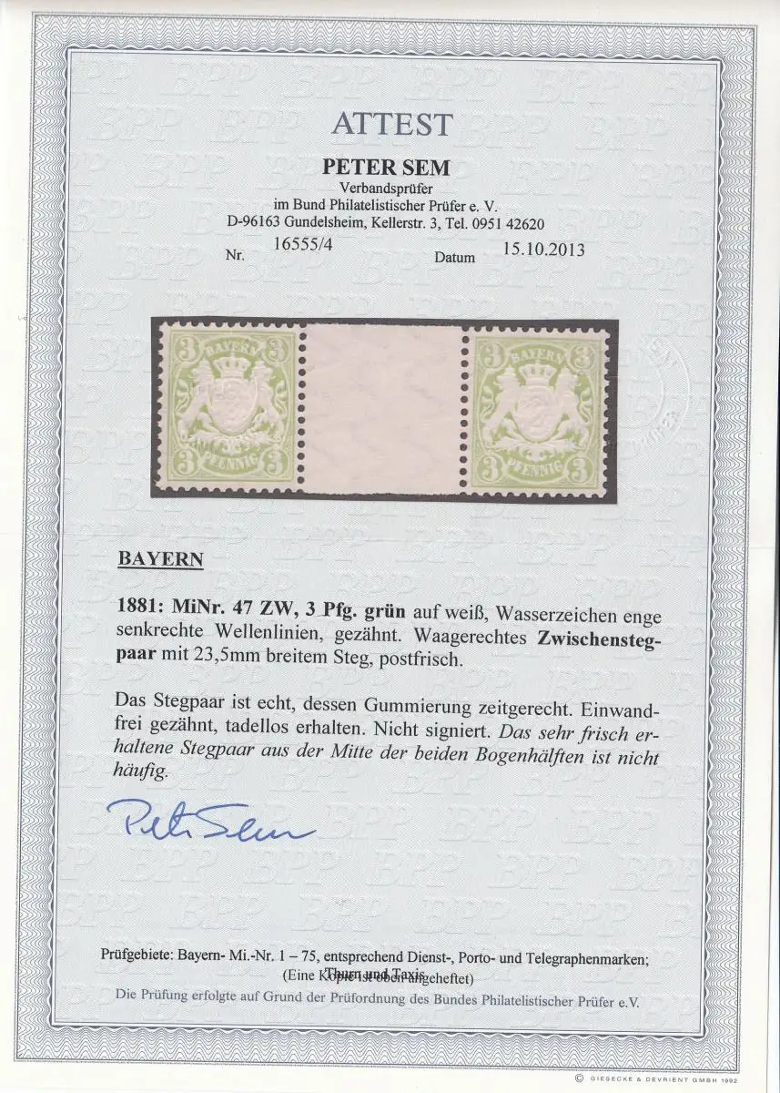 Bavière: MiNr.47 ZW, post-fraîchissement, BPP Attest