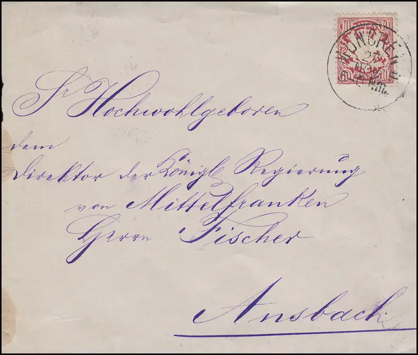 Bayern 10 Pfennig EF Bf. MÜNCHEN II - 27.11. selon ANCHE 27.11