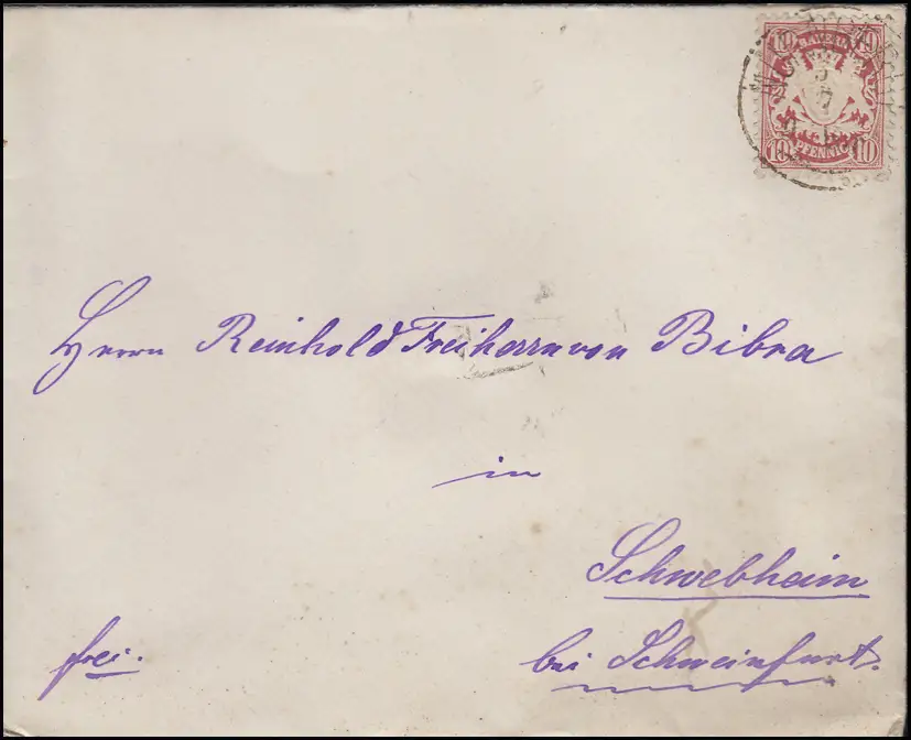 Bayern 10 Pfennig EF Bf. NÜRNBERG I. - 3.7. vers Schwebheim / SCHWEINFURT 3.7