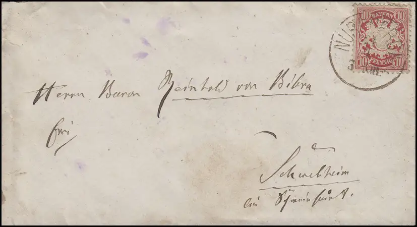 Bayern 10 Pfennig EF Lettre MÜNCHEN I. - 24.4. vers Schwebheim / Schwanfurt