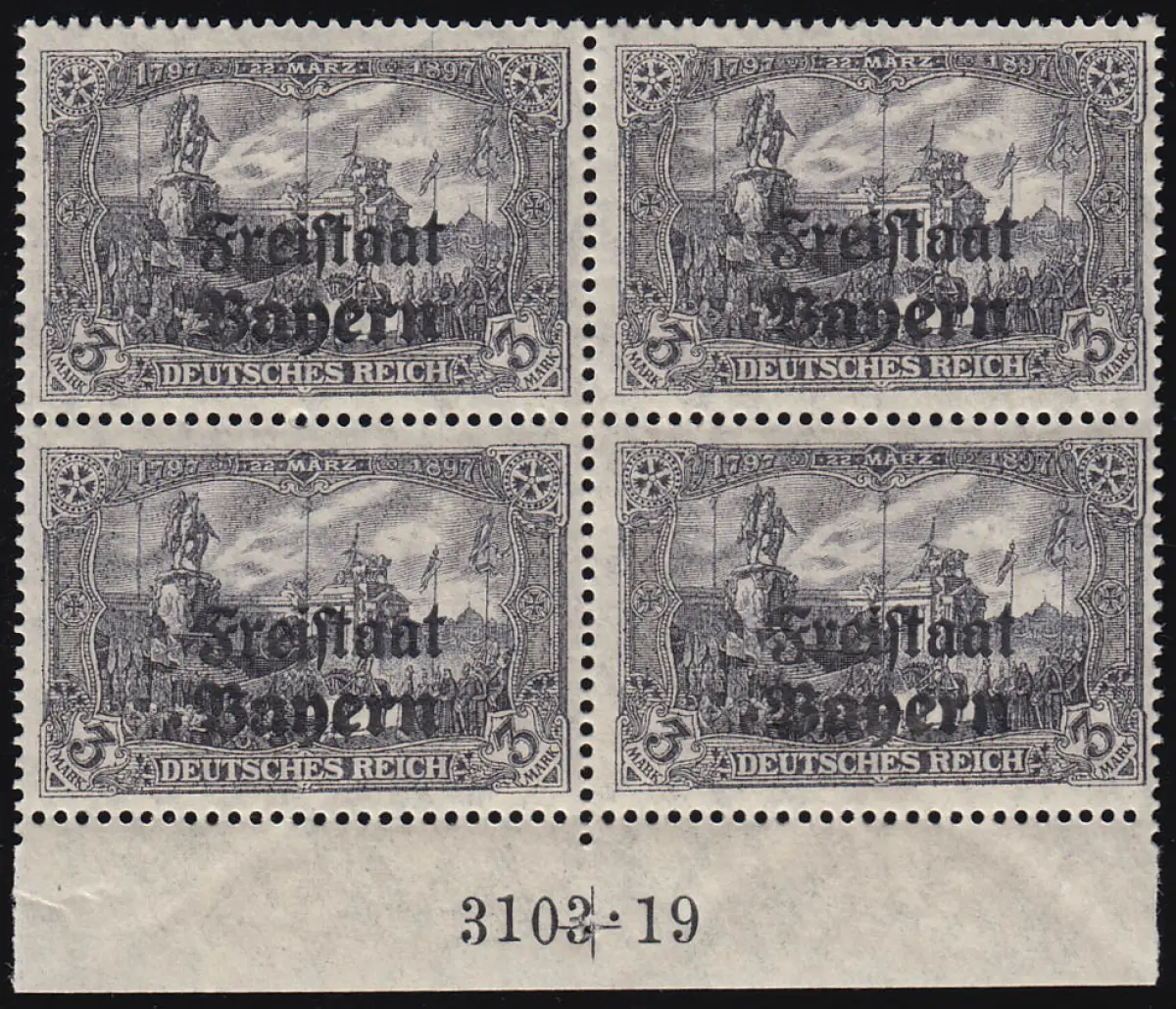 Bayern 150 B HAN Aufdruck 3 Mark im Unterrand-Vbl. mit HAN, ** ungefaltet