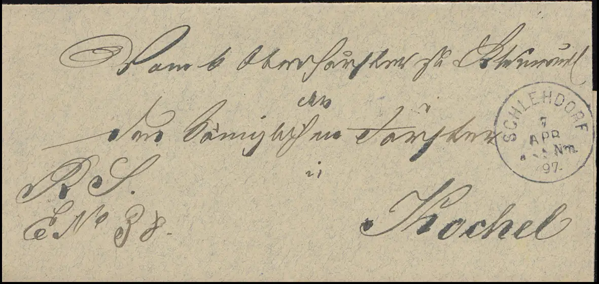 Bavière 1897: Service-Faltbrief Einkreis SCHLEHDORF 7.4.97 selon KOCHEL 8.4.98