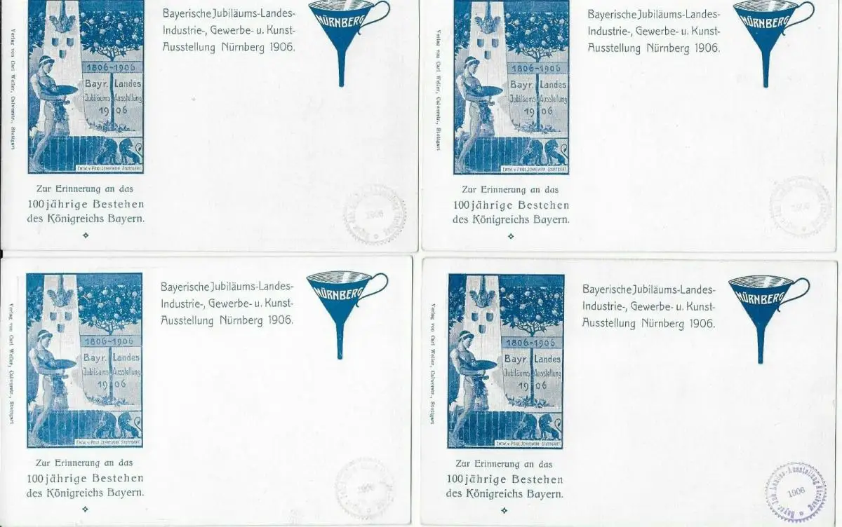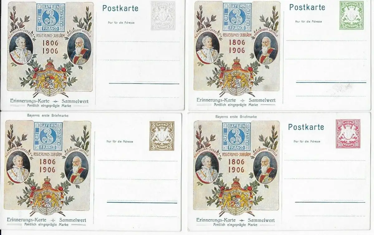 Bayern 1906: 4x entier 100 ans Royaume de Bavière, Exposition du Land 19 06