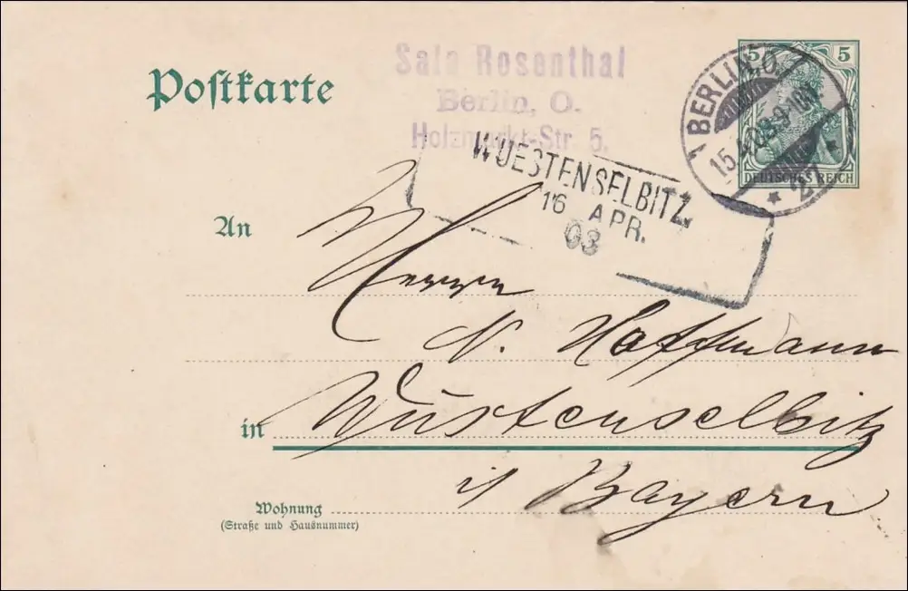 Bavière: 1909, carte postale de Berlin à Wesedrenselbitz