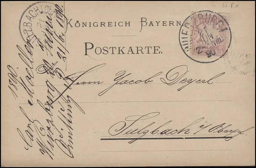 Bayern 5 Pf. Wappen, EF Carte postale WÜRZBURG I. - 21.6.90 vers SULZBACH