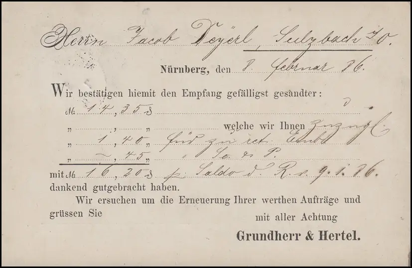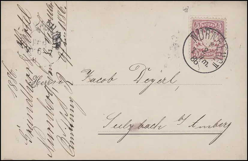 Bayern 5 Pfennig EF Carte postale NÜRNBERG II - 8.2.86 vers SULZBACH 9.2.