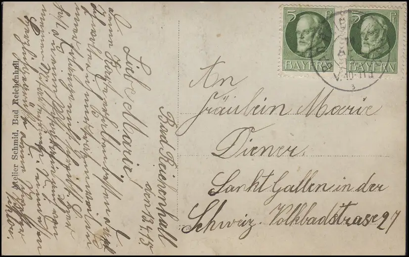 Bayern 95I Ludwig 5 Pf MeF sur carte photo de famille BAD REICHENHALL 14.4.15