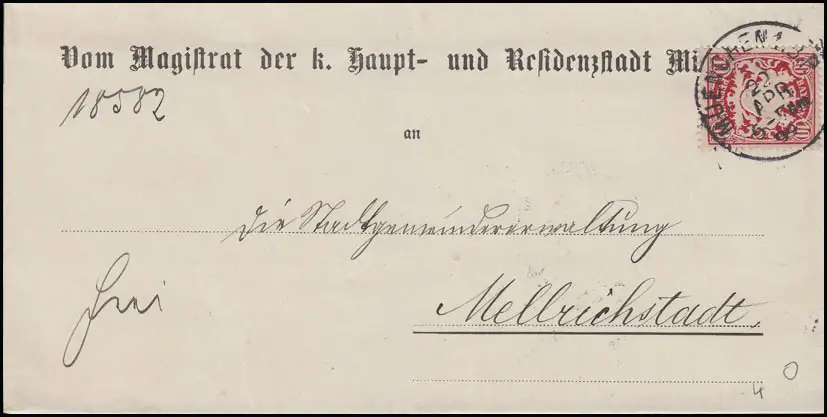 Bayern Brief 10 Pf. Magistrat MUNICHEN 22.4.99 vers MELLRICHSTADT 23.4.1999
