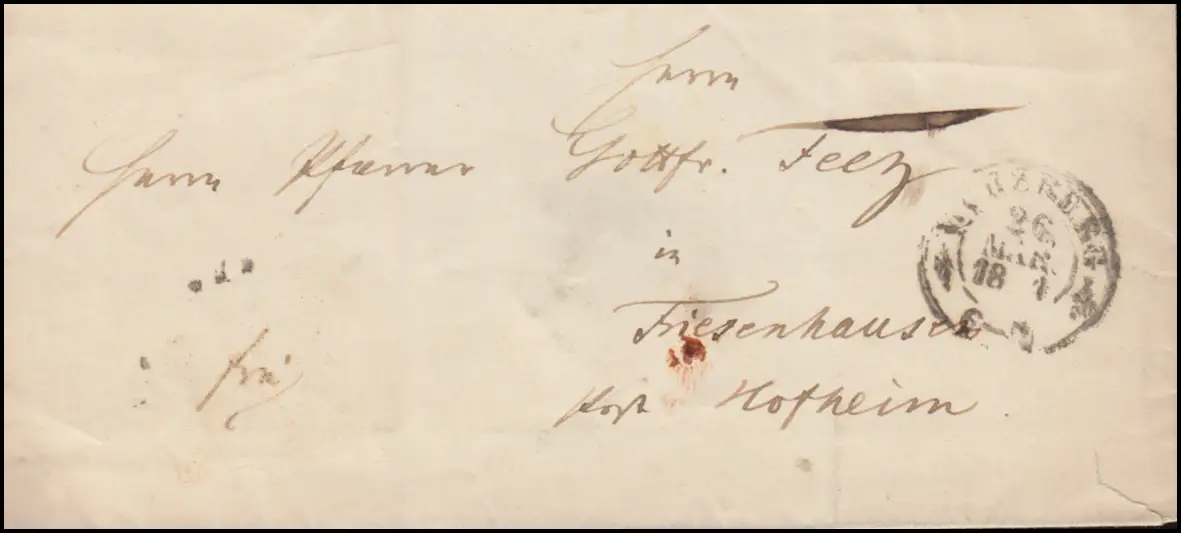 Bayern Briefverhört Zweikreis WÜRZBURG 26.3. vers Friesenhausen bei HoFHEIM 27.3.