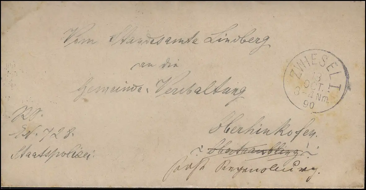 Bayern Dienstbrief Stagesamt Lindberg ZWIESEL 18.10.90 vers Oberhinkofen