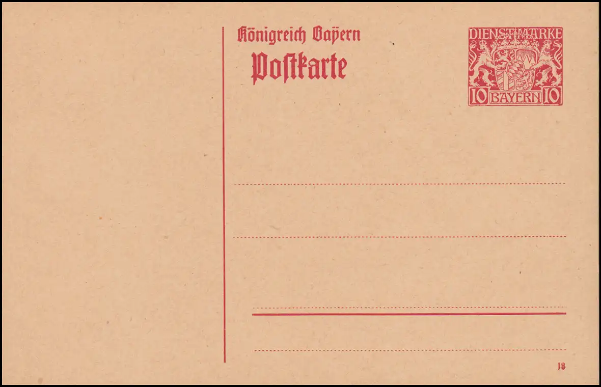 Carte postale de Bavière DP 2 blagues avec couronne 10 pf. rouge, DV 18, **