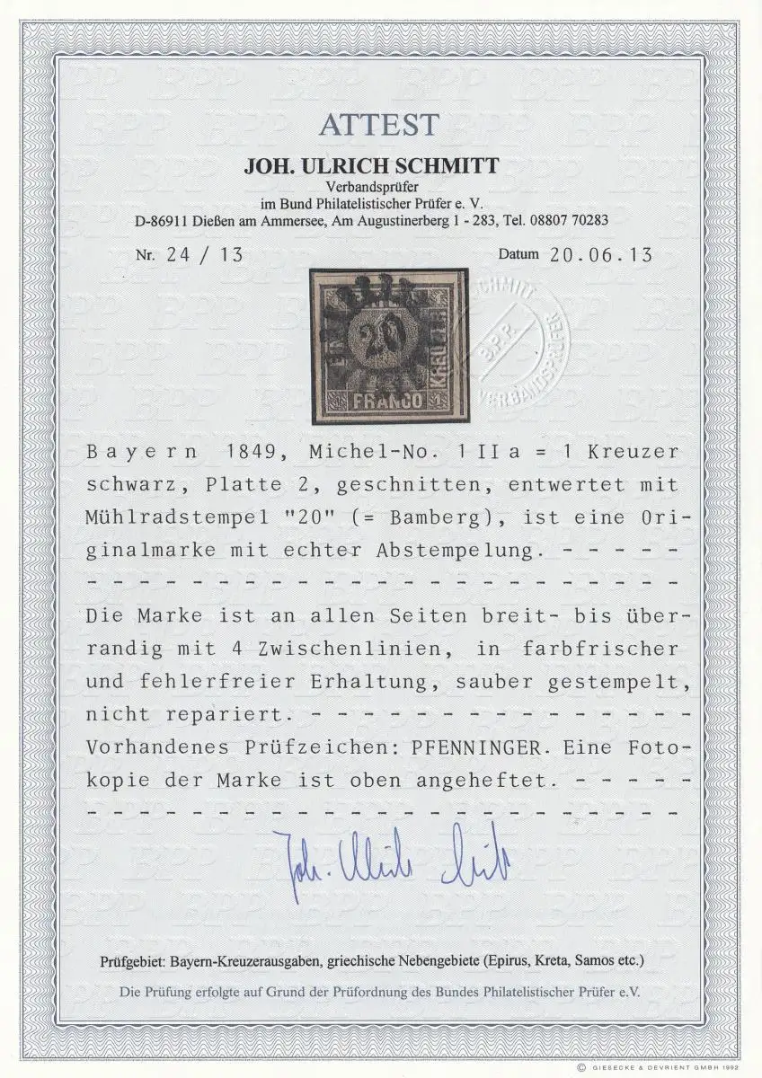 Bavière: Minn. 1 IIa, Mühlradstahl 20, BPP Attest