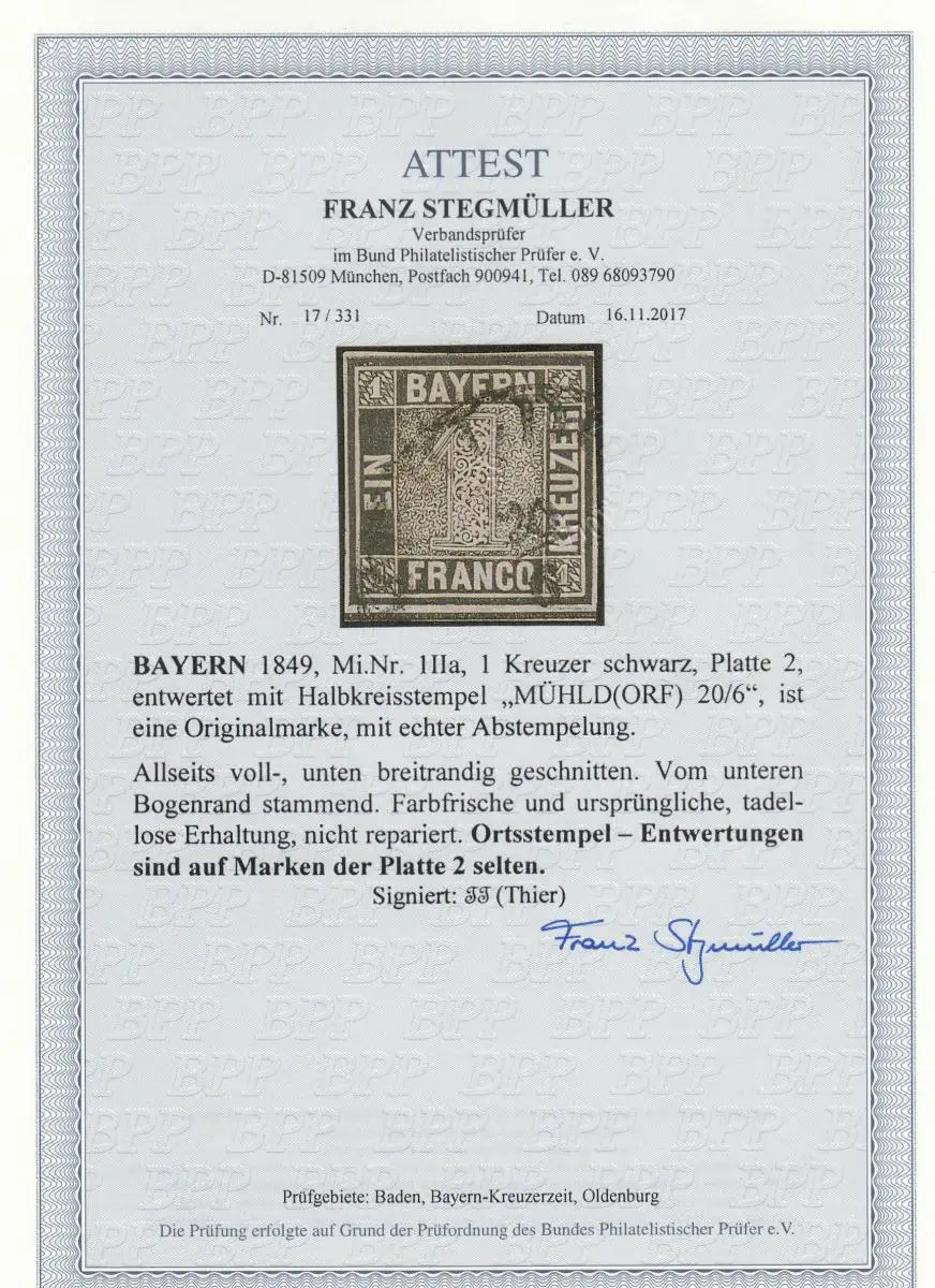 Bavière: Min. 1 IIa, Stamp Mühldorf Stand Platte 2, BPP Attest