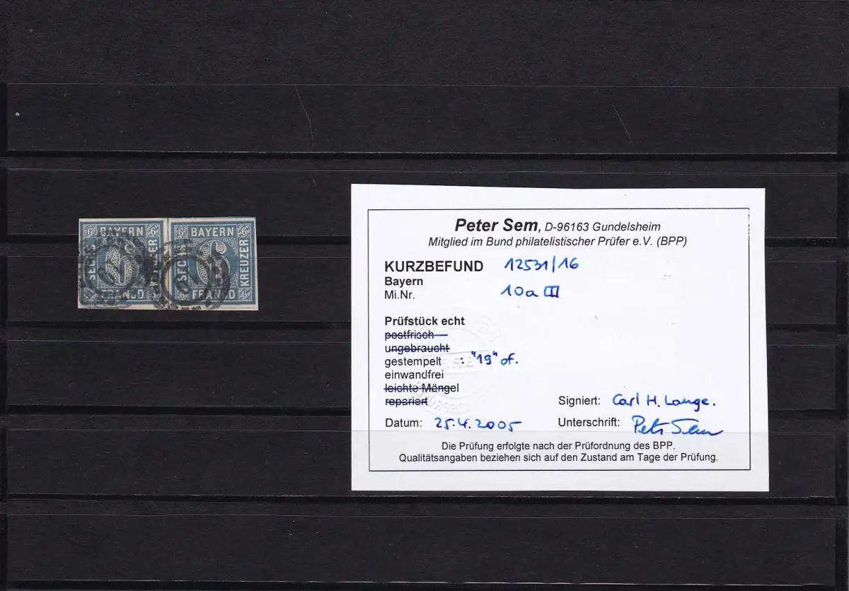Bavière: MiNr. 10a, couple horizontal tamponné, BPP résultat