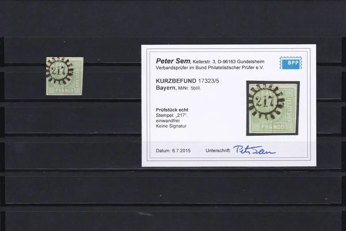 Bavière: MiNr. 5b III, cachet 217, BPP résultat