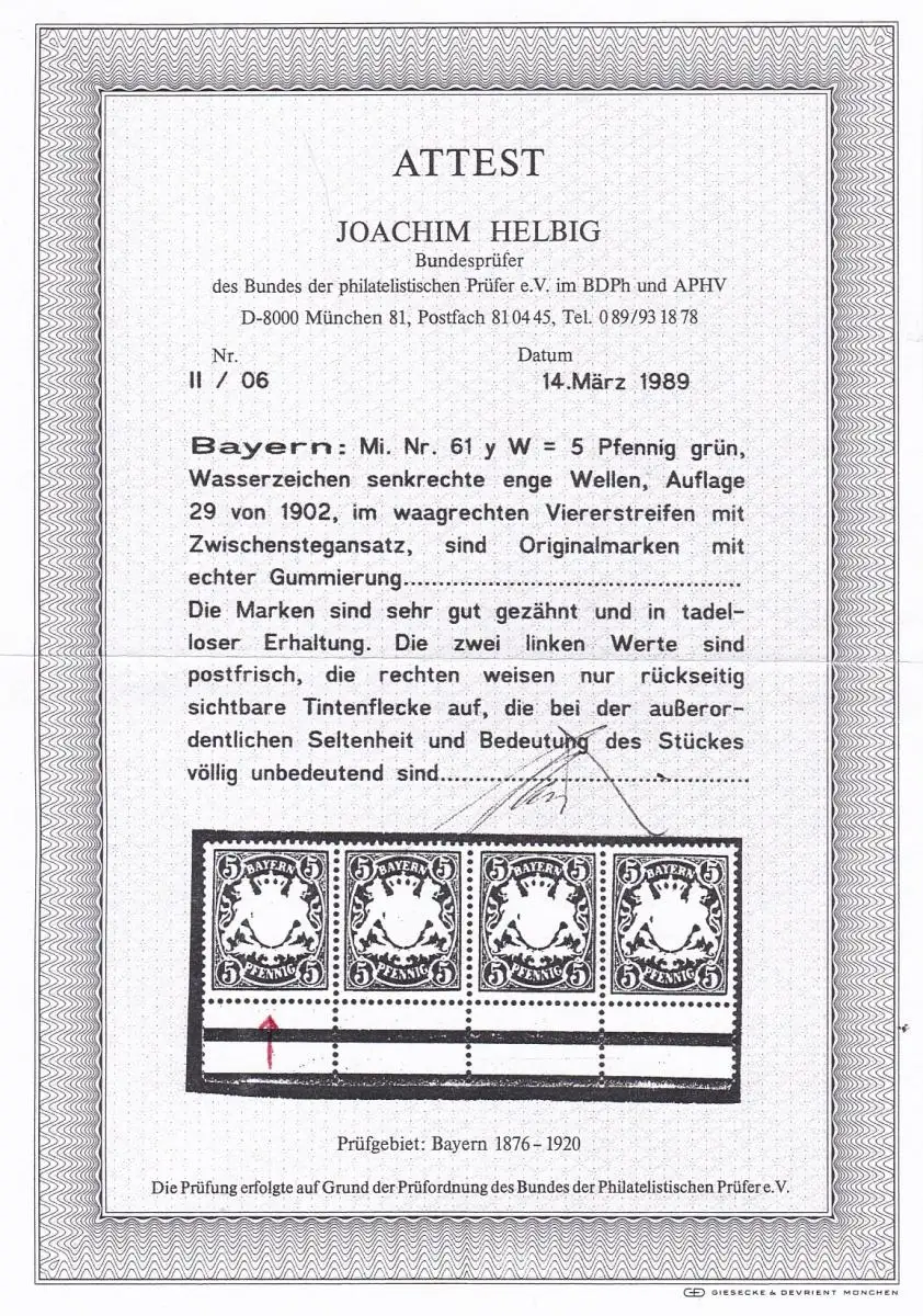 Bavière: MiNr. 61 yW, post-fraîchissement, BPP Attestcopie de la sous-rand