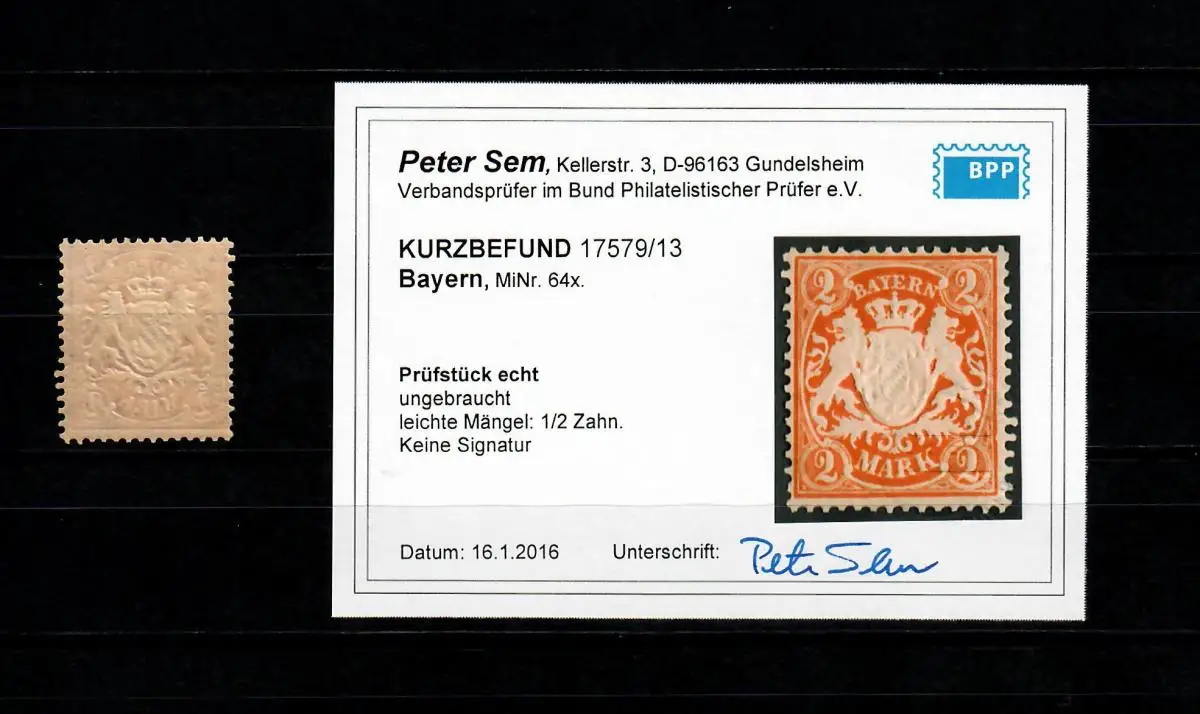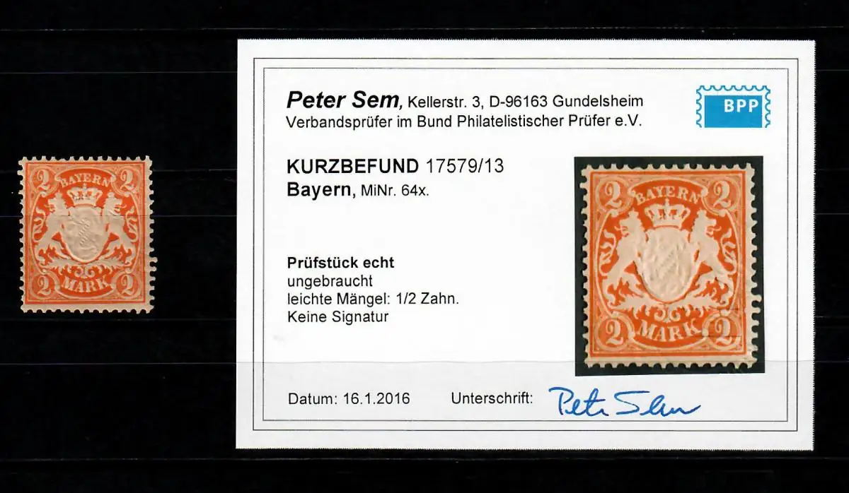 Bayern MiNr. 64x, non utilisé, *, BPP résultats, défauts légers