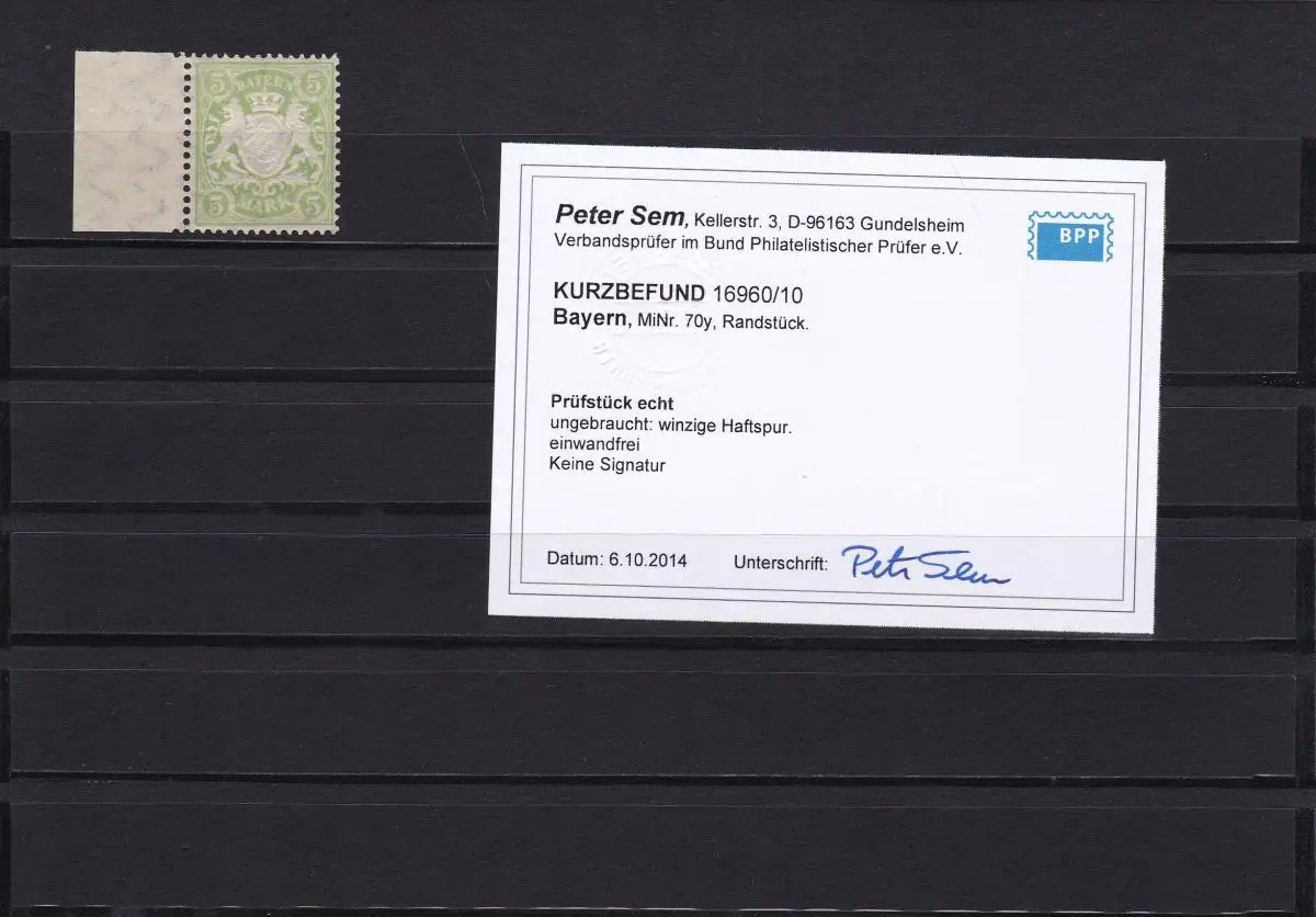 Bavière: MiNr. 70y, centre de détention, BPP résultats
