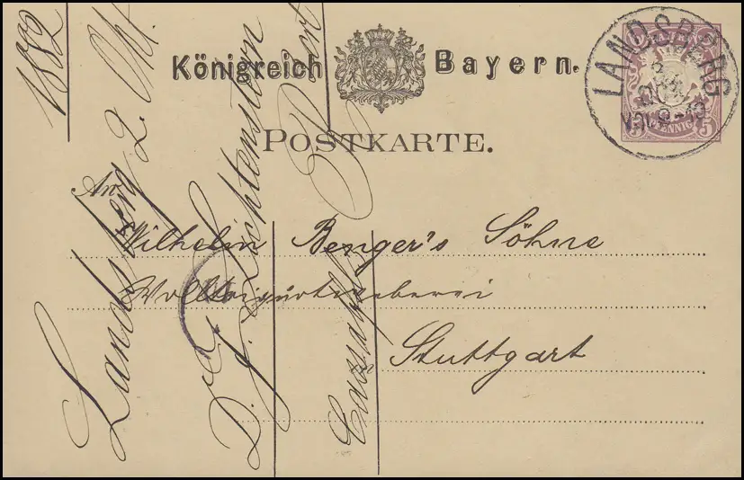 Bayern P 18 Wappen 5 Pf ila, LANDSBERG 3.10.82 vers Stuttgart