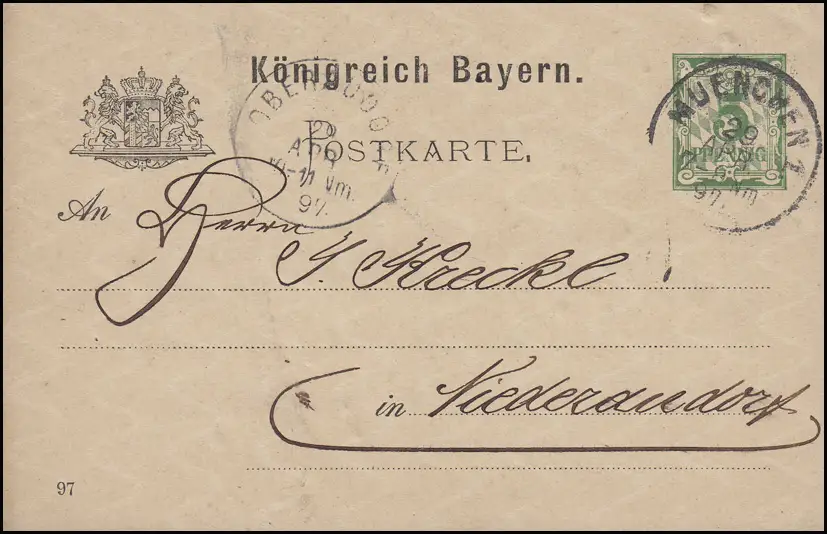 Bayern P 44/03, paragraphe 5 Pf vert DV 97: MÜNCHEN 1. - 29.4.97 vers Niederaudorf