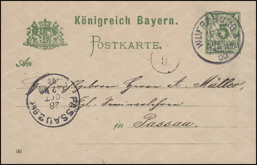 Bayern P 50/01, paragraphe 5 Pf vert DV 00: WÜRZBURG 27.10.00 vers Passau Bhf. 28.10.