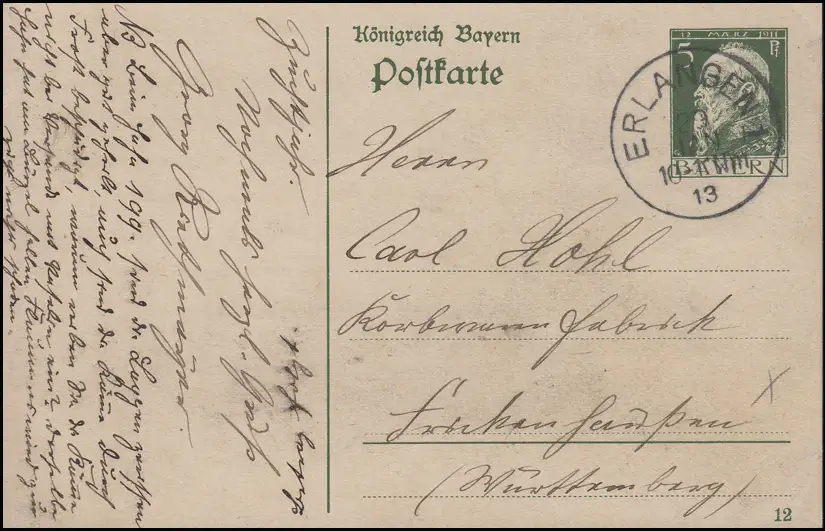 Bayern P 87I/01 Luitpold 5 Pf. DV 12: ERRANGEN 1 - 29.1.13 vers Frinkenhausen/W.