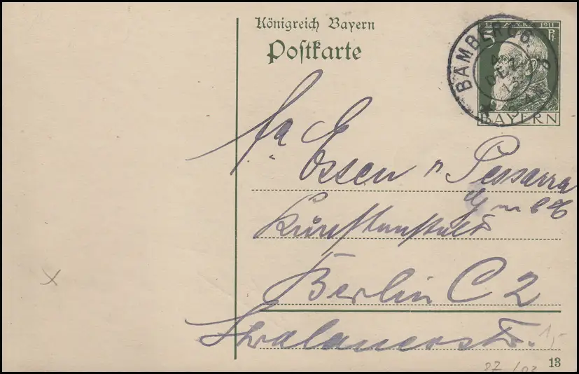 Bayern P 87I/03 Luitpold 5 Pf. DV 13: BAMBERG 4.12.13 vers Berlin