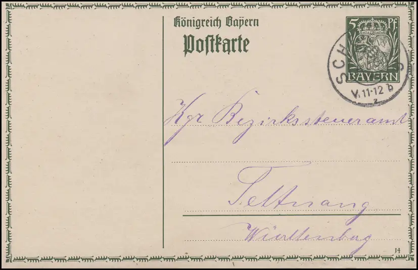 Bayern P 98I/01 Grande Krone 5 Pf DV 14: SCHEIDEGG 16.8.14 n. Tettnang Fiscalité