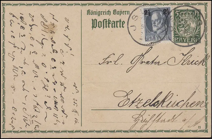 Bayern P 98I/02 Grande Couronne 5 Pf. DV 15 & Francure complémentaire ISLING 25.9.16