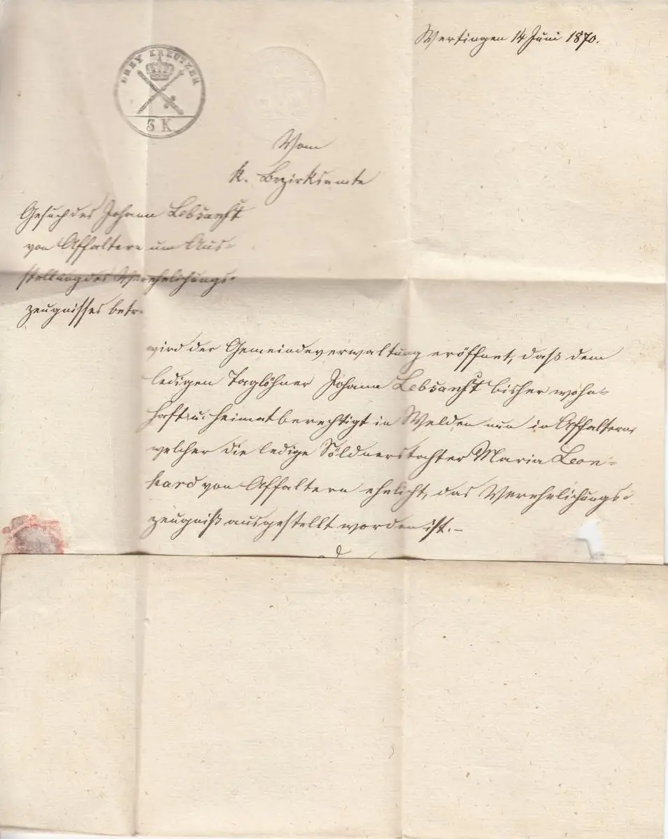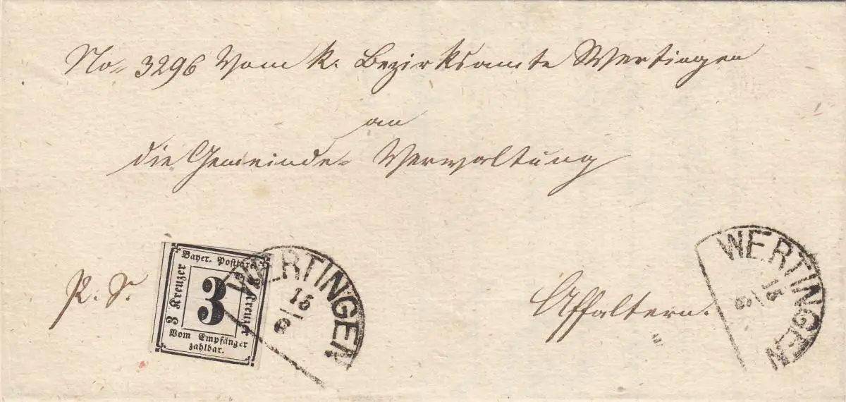 Bavière Porto P1 sur lettre Wertingen