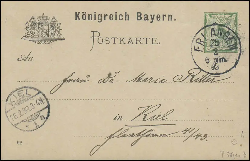 Carte postale de Bavière ENREGISTRE 25.2.92 selon KIEL 26.2.92.