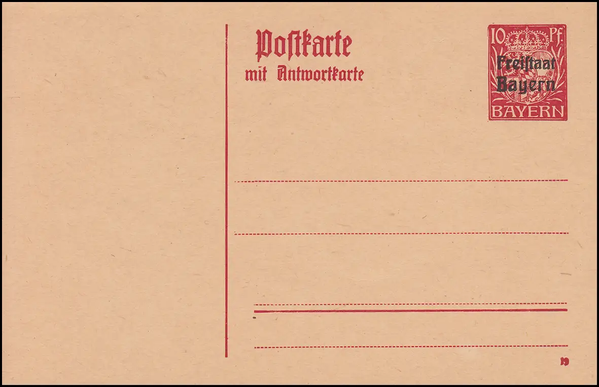 Bayern Postkart P 110/01 Freistaat 10/10 Pf karmin DV 19, tel qu'il est dépensé **
